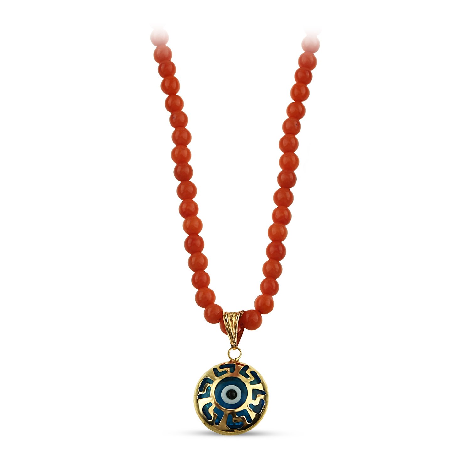 14 Ayar Altın Mavi Boncuklu Nostaljik A Harf Kolye