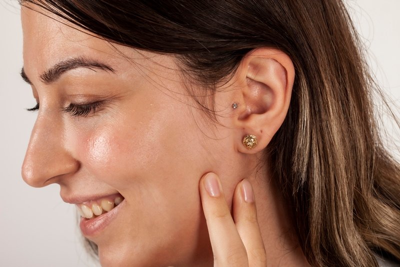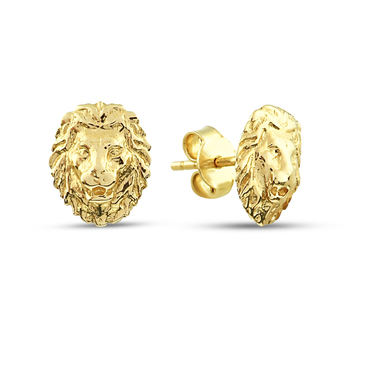 | Maden: Altın Renk: Sarı Ağırlık: 1.57 gr Ayar: 14K | Güç ve asalet sembolü Aslan başı figürlü arkası çivi ve kelebekli şekilde kullanılan zarif küpe. |