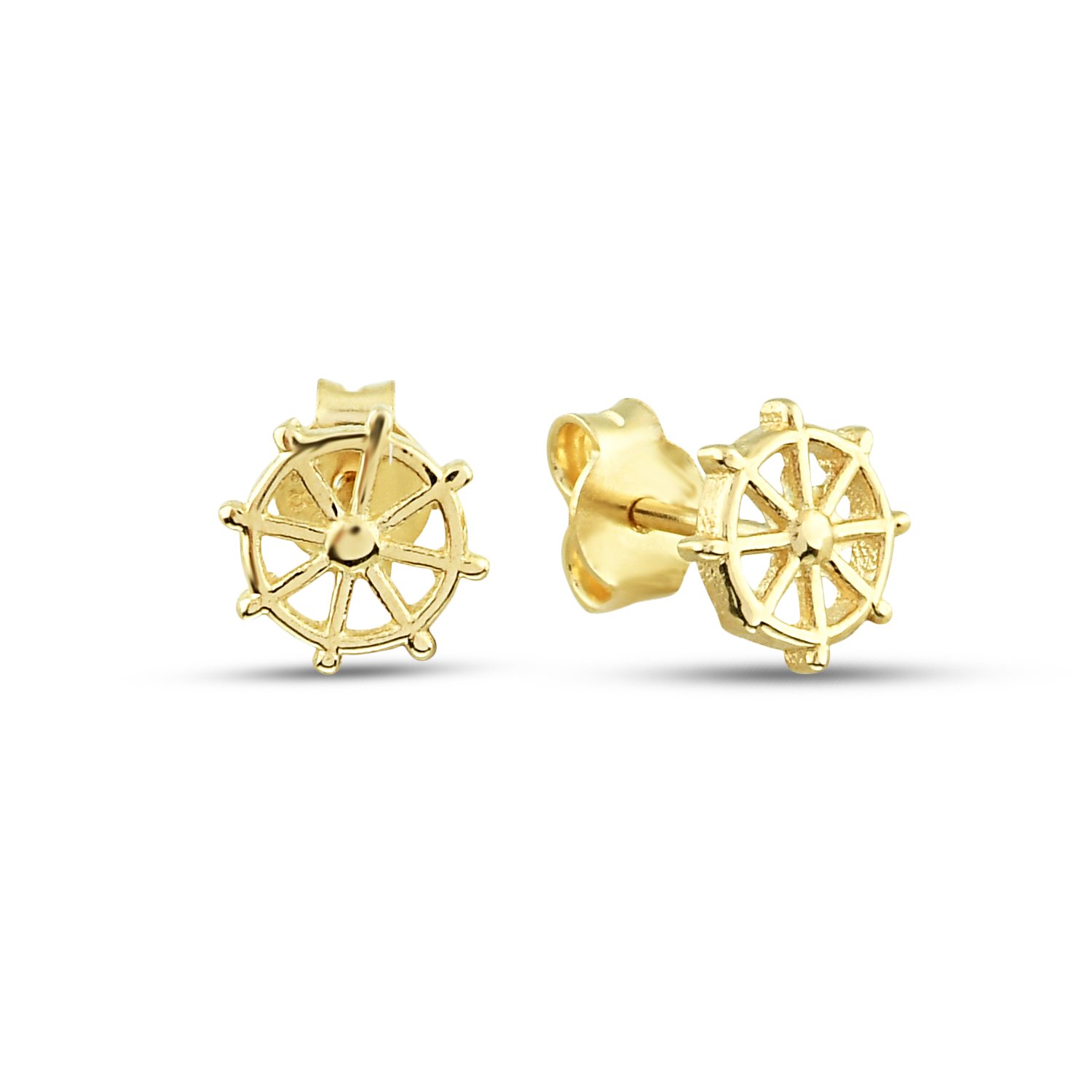 | Maden: Altın Renk: Sarı Ağırlık: 1.15 gr Ayar: 14K | Denizcilik sevenlere dümen figürlü arkası çivi ve kelebekli şekilde kullanılan zarif küpe. |