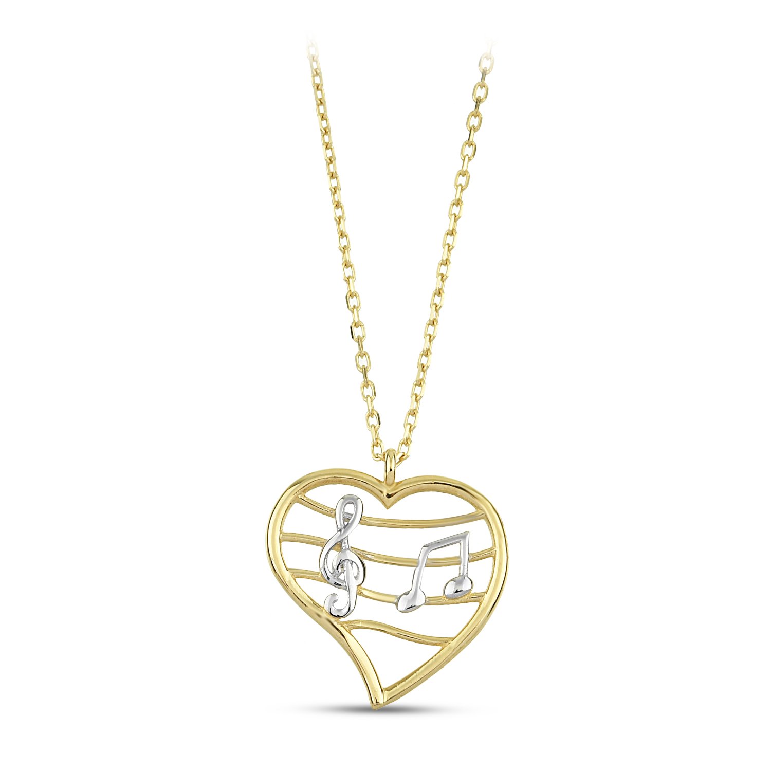 | Maden: Altın Renk: Sarı Ağırlık: 1.60 gr Ayar: 14K | Müzik ruhun gıdasıdır. Üzerinde sol anahtarı ve nota detayı bulunan zarif kalp kolye. |