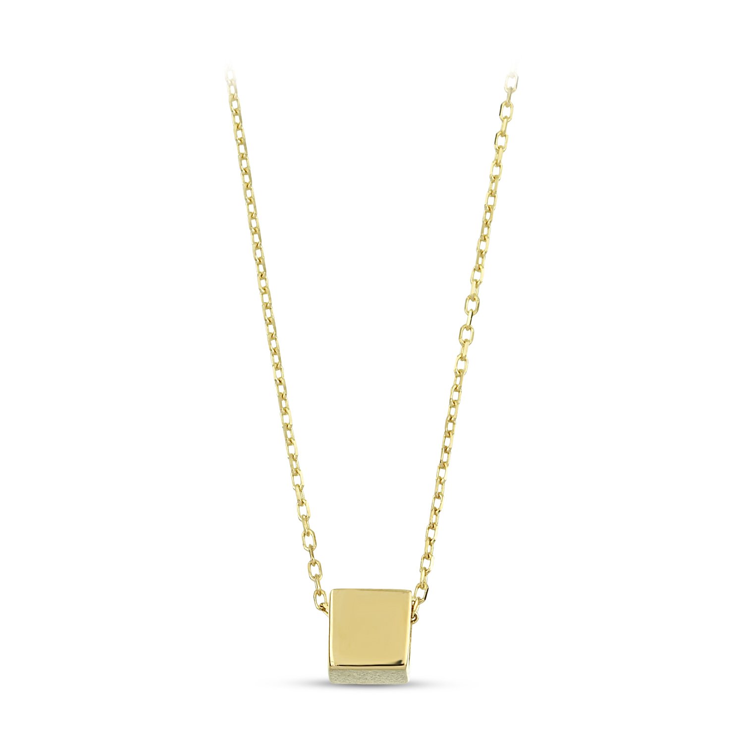 | Maden: Altın Renk: Sarı Ağırlık: 1.51 gr Ayar: 14K | Küp formu kolye. Dilerseniz ileride Küp formunun her yüzeyine bir harf yazdırabilir kolyenizi daha kişisel bir hale getirebilirsiniz. Küp hayatın her düzleminde farklı bir bakış açısı olduğunu simgeleyen bir semboldür. |
