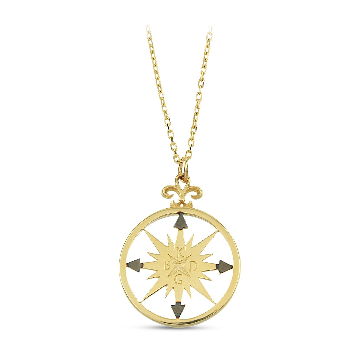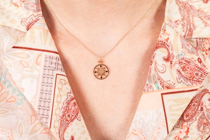 | Maden: Altın Renk: Sarı Ağırlık: 2.06 gr Ayar: 14K | Pusulanız her daim sizi doğru yöne götürsün. Kuzey / Güney / Doğu/Batı detayları işlenmiş şık günlük kolye. |