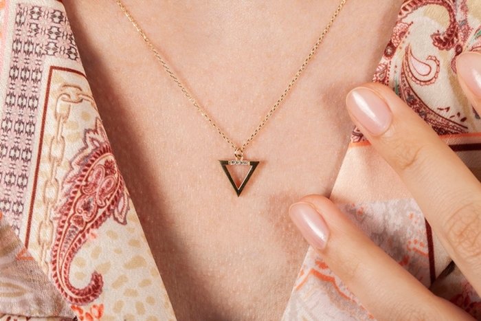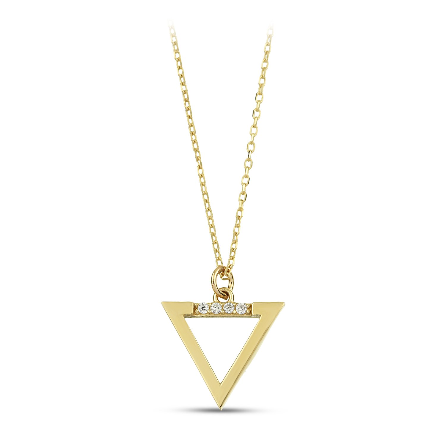 | Maden: Altın Renk: Sarı Ağırlık: 1.68 gr Ayar: 14K | Üçgen formunda mini zirkon taşlı Kolye. Zirve ve Zemin hayatın içinde ikisi de mümkündür. |