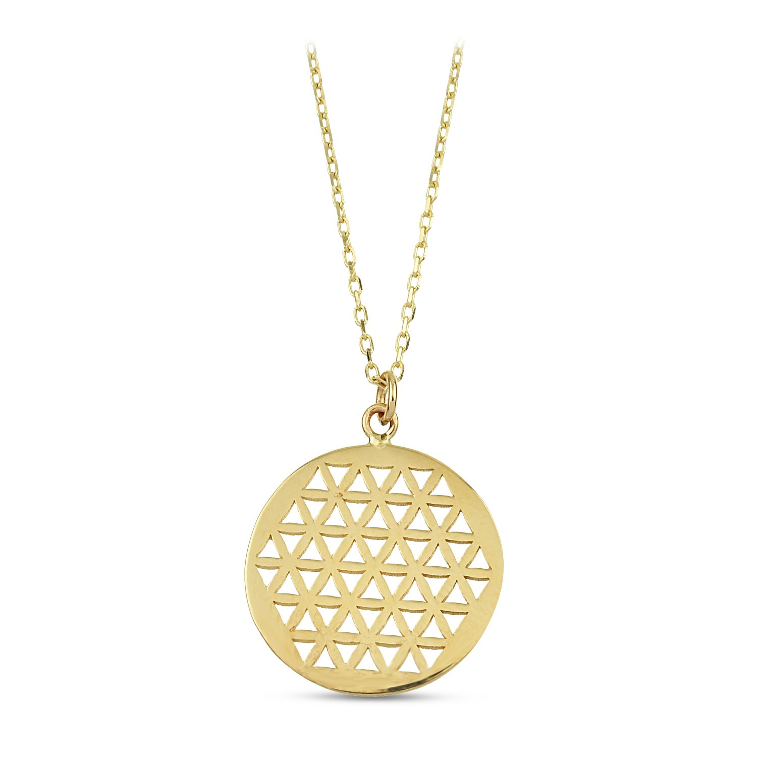 | Maden: Altın Renk: Sarı Ağırlık: 2.10 gr Ayar: 14K | Yaşam çiçeği Plaka stilde kolye |