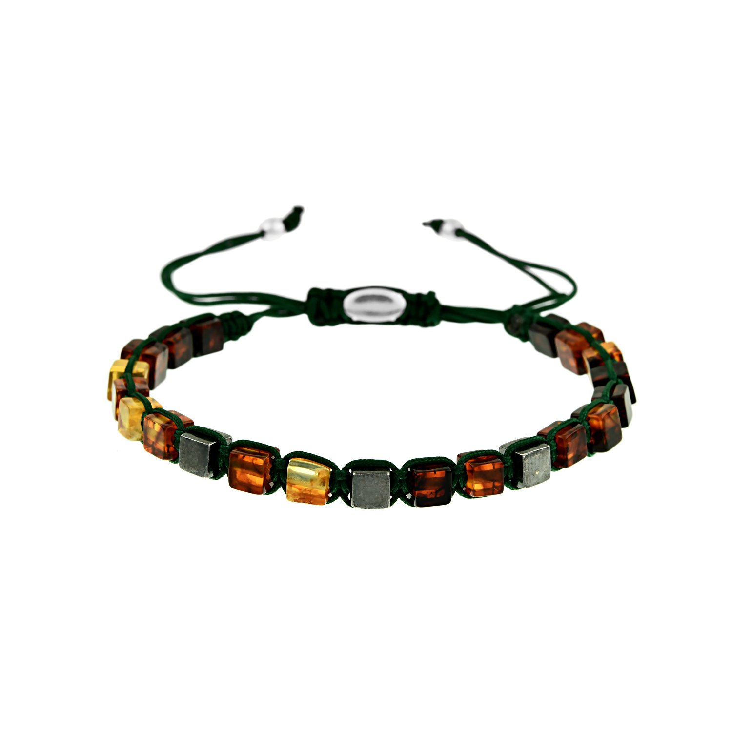 Gümüş okstili küp detayı ve yeşil ip rengiyle çok şık